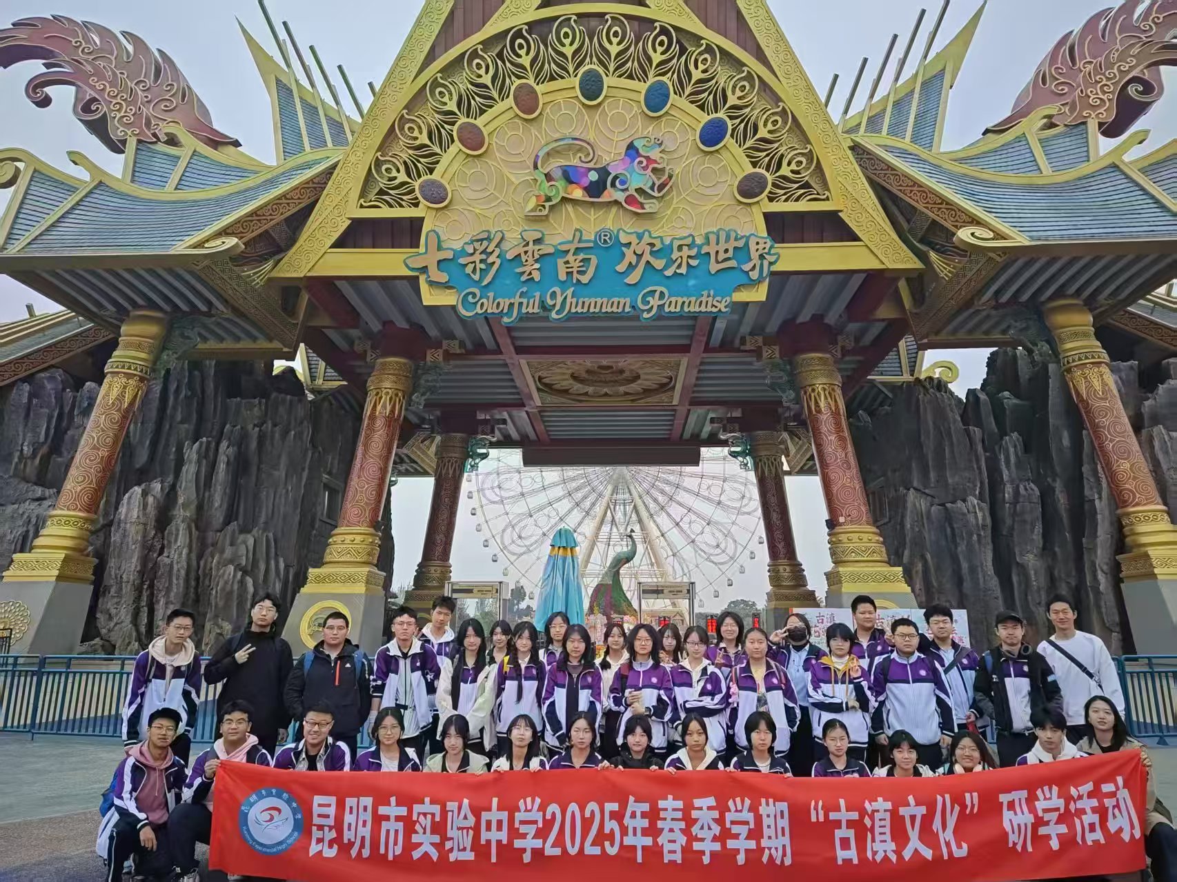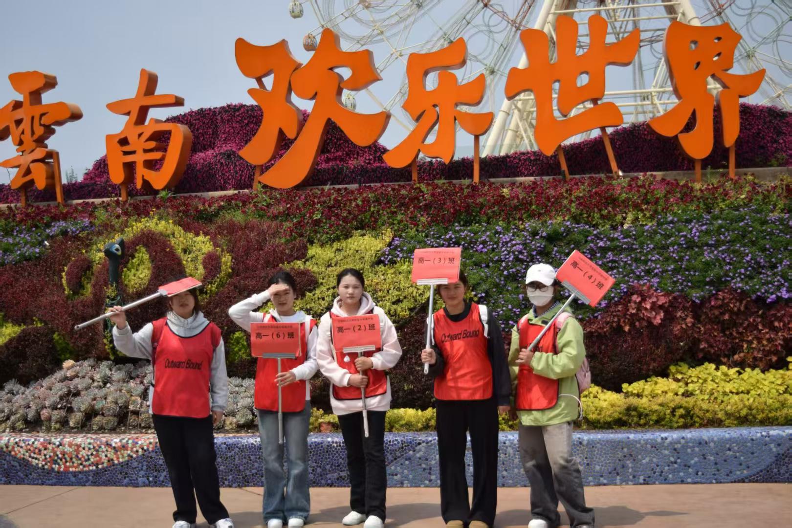 3月31日,在线买世界杯平台旅游管理专业和导游专业的50余名学生带领云南师范大学实验中学、昆明实验中学、颐惠园小学的学生们踏进了七彩云南欢乐世界,开启研学带团活动。