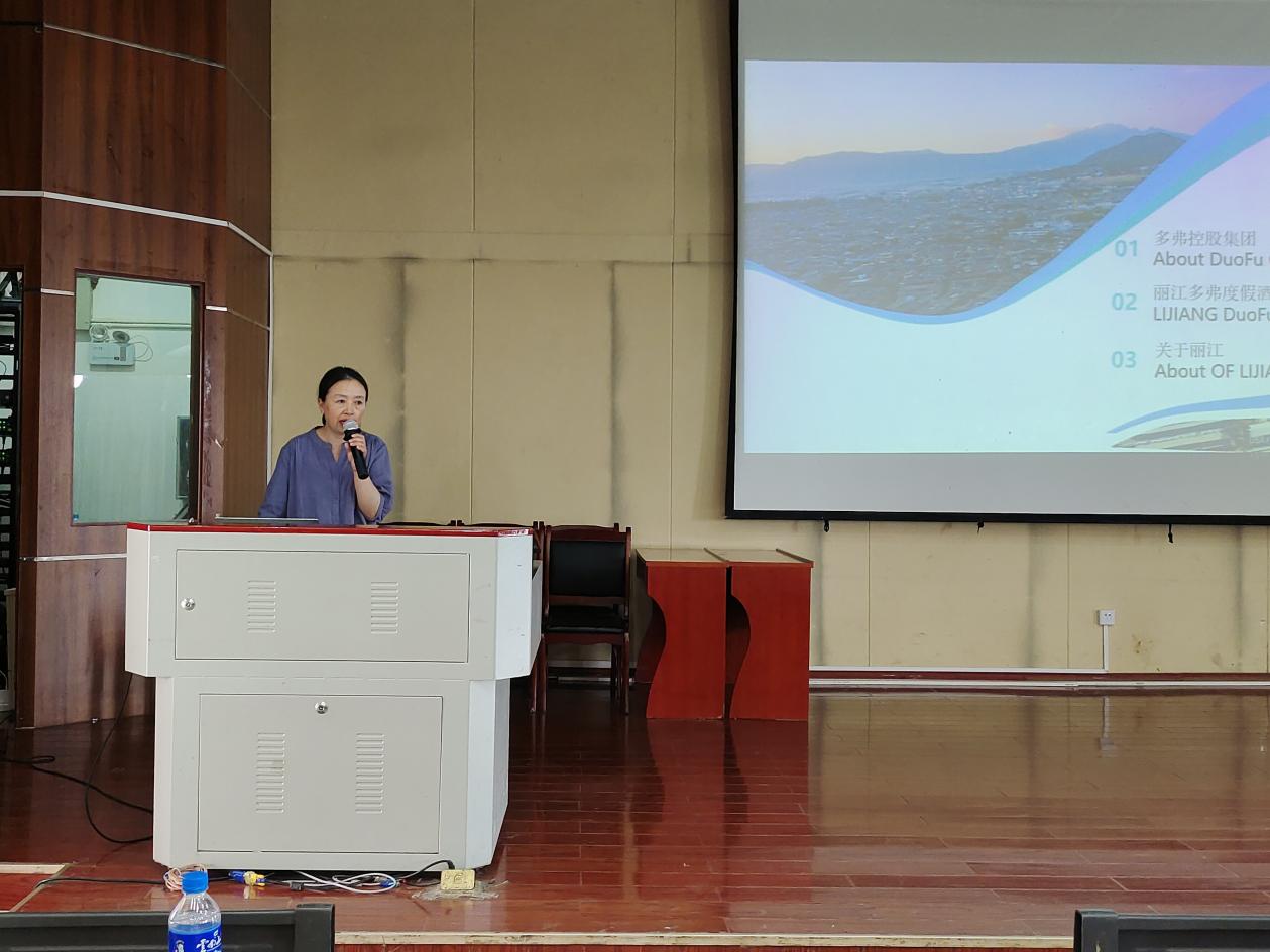 5月14日,昆明世纪金源大饭店有限公司、丽江多弗度假酒店在光荣讲堂举行学徒制宣讲会。宁波市奉化区梦应康养产业发展有限公司(宁波紫璋台度假酒店)和珠海长隆在线上召开宣讲会。