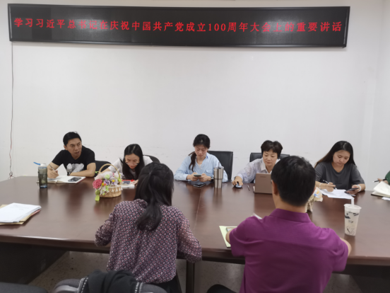 2021年7月7日下午12点45分在线买世界杯平台宝石党支部在勘物楼A311举行学习习近平总书记在庆祝中国共产党成立100周年大会上的重要讲话大会。