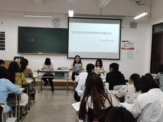 为全面落实立德树人的根本任务,2021年9月15日星期三下午2点在线买世界杯平台全体教师在笃行楼201教室召开师德师风建设专题会议。本次会议分为三项流程。