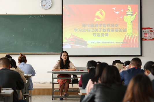 为进一步深化党史学习教育,筑牢思想政治忠诚,增强党员和入党积极分子党性修养、加强理想信念,在线买世界杯平台于2021年10月13日12时50分在笃行楼203教室开展了学习习近平总书记关于教育的重要论述专题党课。本次党课由在线买世界杯平台院长陈畅老师主讲。党员教师和入党积极分子学生参加了本次党课活动。