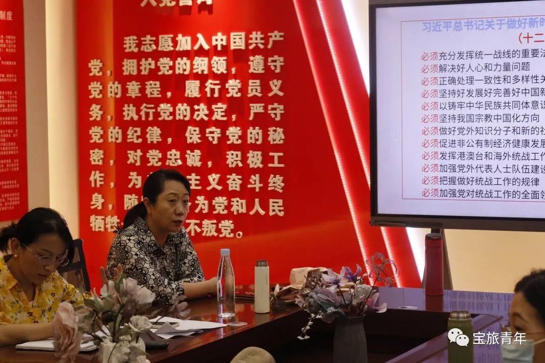 接着,党委统战部部长兼校妇联常务副主席刘燕为全体党员讲“统一战线”。要调动一切群众积极因素,促进政党关系、民族关系、宗教关系、奸人关系,海外海内外关系和谐,最大限度凝聚起共同奋斗的力量,随后讲解扶贫战线工作的八大原则及统一战线工作对象。 她指出发展好完善好中国新型政党制度,中国共产党领导的多党合作和政治协商制度,必须以铸牢中华民族共同体意识,为党的一致工作的主线。做好知识分子和新的社会基层人士统战工作,统一战线是中国共产党执政兴国的重要法宝,也是我们实现中华民族伟大复兴的重要法宝,强调了党的宗教信仰与纪律要求。