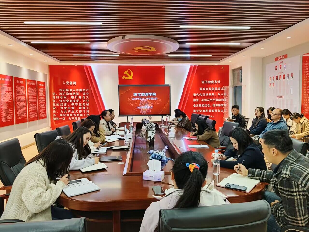 本次会议分为两个阶段,第一阶段:政治理论学习共两个内容:一是专题领学,由张颖书记带领全体党委委员学习,学习的内容是《习近平总书记在中共中央政治局第十一次集体学习上的重要讲话精神》。必须牢记高质量发展是新时代的硬道理,全面贯彻新发展理念,把加快构建新发展格局,统筹推进深层次改革和高水平开放,统筹高质量发展和高水平安全战略任务落实到位,完善推动高质量发展的考核评价体系,要求畅通教育科技人才的良性循环,完善人才培养引进使用合理流动,根据科技发展新趋势,优化高等学校学科设置人才培养模式,为发展新质生产力,推动高质量发展培养急需人才。二是学习2024年第2期、第3期《求是》,习近平总书记的重要文章《完整、准确、全面贯彻落实关于做好新时代党的统一战线工作的重要思想》《铸牢中华民族共同体意识推进新时代党的民族工作高质量发展》强调,统一战线是党的总路线总政策的重要组成部分,在我国革命建设,改革不同历史时期发挥了重要作用。统一战线呈现出团结、奋进、开拓、活跃的良好局面。铸牢中华民族共同体意识,就是要引导各族人民牢固树立休戚与共,荣辱与共生死与共,命运与共的共同体理念,把铸牢中华民族共同体意识作为新时代党的民族工作和民族地区各项工作的主线。