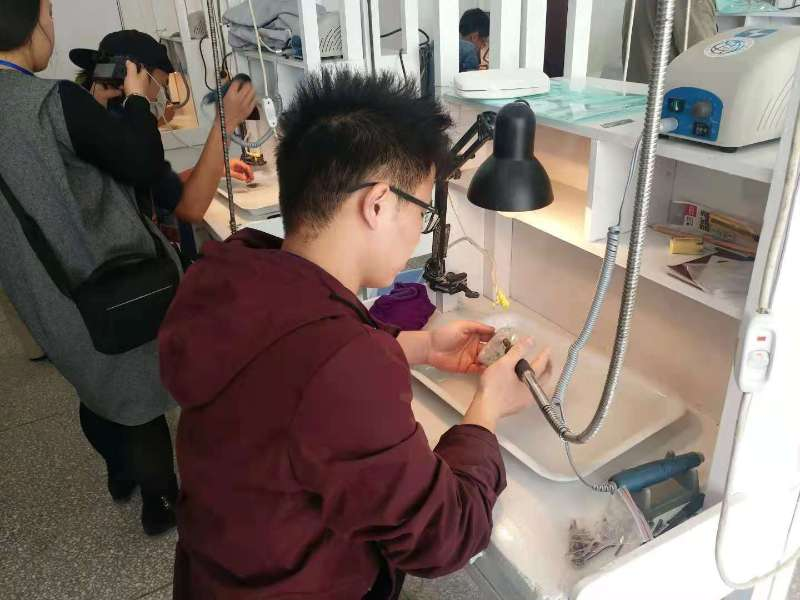 玉石雕刻实训室拥有玉石雕刻软轴玉雕机60台,水切机1台,油切机1台,玉石抛光机2台,玉石小型开料机2台,还拥有电子玉雕机50台,是在线买世界杯平台主要的专业实训室之一。其可满足宝玉石鉴定与加工专业、首饰设计与工艺专业、雕刻艺术设计专业的“玉石雕刻”课程的理实一体教学,还可以满足可进行中“玉石雕刻工”初级工、中级工、高级工的职业技能鉴定考核需要,同时还可为社会提供玉石雕刻加工等技术服务。通过实训使学生熟悉植物雕件、动物雕件、人物雕件制作的基本流程,掌握常见玉雕产品的制作方法及工艺流程,培养学生分析问题、解决问题的能力,增强学生的玉石加工技能及提高学生玉雕件鉴赏的能力。