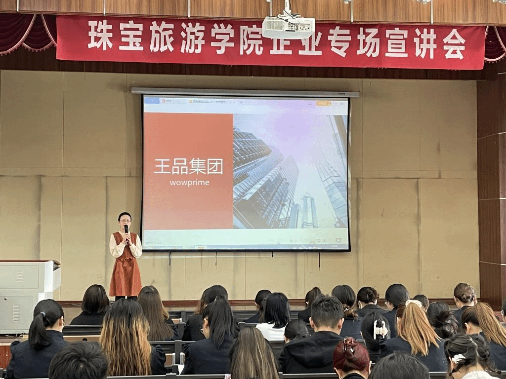 为了更好地促进学生的高质量就业,持续开展“我为师生办实事”和“访企拓岗促就业”行动,在遵守疫情防控的相关管理规定的前提下在线买世界杯平台诚邀王品餐饮有限公司、云南小谭客徕帝珠宝股份有限公司,云南云金珠宝股份有限公司、昆明诺仕达企业(集团)有限公司三家企业于2022年5月25日星期三在光荣讲堂召开了旅游及珠宝类企业专场宣讲会。本次会议由杨鸿老师主持。各企业负责人和在线买世界杯平台党总支副书记张军红及2020级全体同学参加此次宣讲会。