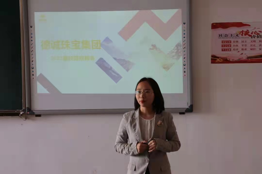 宣讲会伊始,招聘人员结合相关幻灯片的详细宣讲,使参会毕业生大致了解公司的创新成果、团队建设、运作理念,以及了解到德诚珠宝公司是拥有国际一流的先进设备与一支“有梦想、懂技术、擅管理”的优秀人才团队,是珠宝人才的摇篮。本年度该公司的招聘需求较大,且具有较好薪酬待遇和工作环境,相关人事专员针对招聘岗位的人才需求和培养计划,以及同学们关心的问题,与在场同学积极交流互动。会后,许多同学向该公司投递简历,招聘经理也在现场对有意向的同学进行了面试。