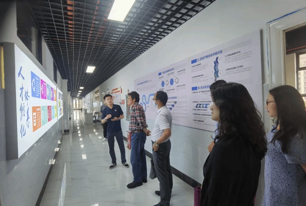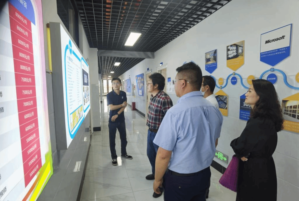 此次拜访受到了公司的热情接待,市场部经理张鹏等陪同学校一行参观企业文化长廊,对企业的发展历程、业务板块、人才孵化体系、深化产教融合等方面做了详细介绍。