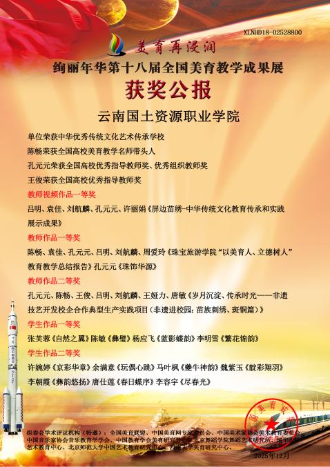 近日,第十八届“绚丽年华”全国美育教学成果展评选结果揭晓。我校在本届成果展中表现卓越,斩获多项国家级荣誉,充分展现了学校在美育教育改革与优秀传统文化传承方面的丰硕成果。