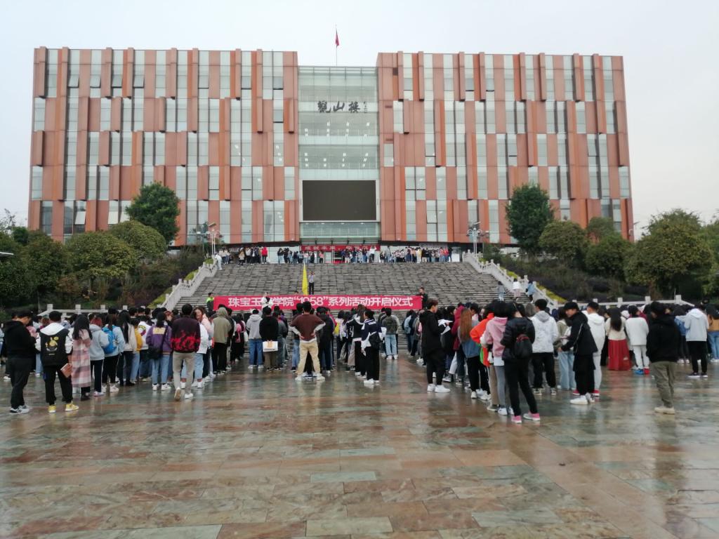 雨后的校园,无论向蓝白调和而成的天空凝望,还是朝衰弱无力的树木远眺,这被凄冷的风轻抚过的画面,总是抹上一层厚厚的凉意,而冬天的早晨更是寒冷至极。但是在在线买世界杯平台里,这里的学子们不是这ô认为的。在寒冬的到来,我们更应该重视自己的身体锻炼,养成早睡早起的良好习惯。为了积极响应学校的号召,增强学生们的身体素质和提高学生的积极性,珠宝玉石学院于2019年9月23日早晨7:30在国土广场上举行了“1958”活动的开幕式。
