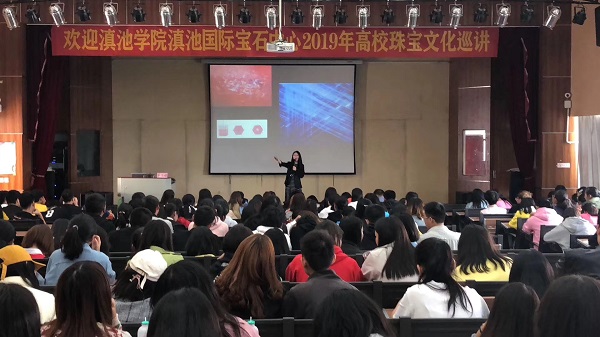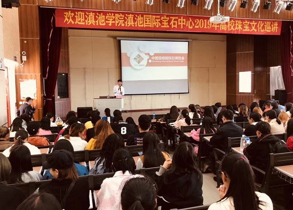 会上,滇池国际宝石中心负责人杨丰凯主任为大家介绍了DGI国际宝石中心,施一鸣老师向大家推荐了珠宝方面相关权威微信公众号并邀请同学们参加石博会展览。