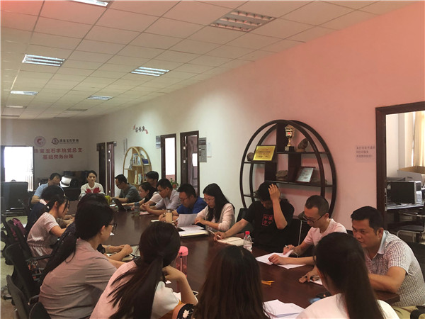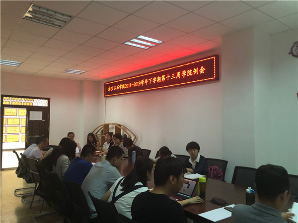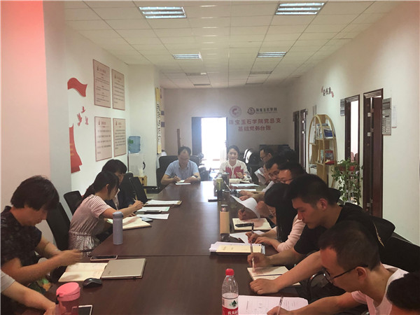 2019年5月24日下午,珠宝玉石学院2018-2019学年下学期第十三周学院部门例会在在线买世界杯平台阳宗海校区勘物学院办公室召开,珠宝玉石学院党总支书记陈畅、副院长刘德利、副院长汪朝飞及学院全体教师参加了此次会议。