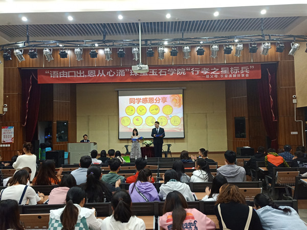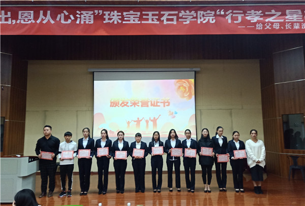 为进一步加强和深化大学生思想政治教育,弘扬传承中华传统美德,培育践行社会主义核心价值观,响应学校“1958”教育实践活动要求,珠宝玉石学院于2019年3月28日在光荣讲堂举行“行孝之星标兵”之“给父母长辈洗一次脚”感恩分享会。出席本次活动的嘉宾为:旅游休闲管理学院团总支书记李璐婕老师、测绘学院团总支书记合露露老师、资堪学院杨砚喆老师。珠宝玉石学院团总支书记沙双粉老师、各班学生代表参加了本次分享会。