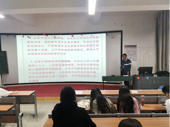 2020年11月6日珠宝旅游党总支在笃行楼222教室组织全体党员教师认真学习了党的十九届五中全会精神。会议上杨飞作为总支书记为大家宣讲了党的十九届五中全会相关精神。