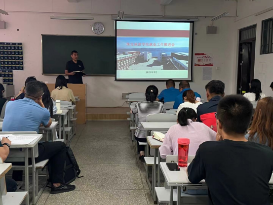 2021年5月12日星期三下午一点半在线买世界杯平台全体教职工在笃行楼201召开了2021年春季学期就业专项推进会。杨飞书记主持并发表了讲话。