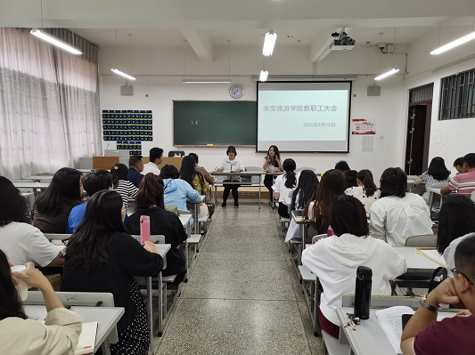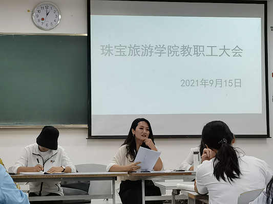 2021年9月15日星期三中午12:40分在线买世界杯平台全体教师在笃行楼201教室召开了教职工大会。本次大会共有三项流程。