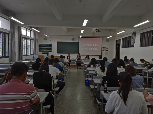 首先陈畅院长就学校创建文明校园的重要性进行了发言,她指出创建文明校园是每一位教职工的职责,要深入学习贯彻习近平总书记系列重要讲话精神和治国理政新理念新思想新战略,贯彻落实中央关于教育工作和深化群众性精神文明创建活动的重大决策部署,推动全校广泛深入开展文明校园创建活动,着力培育和践行社会主义核心价值观,着力加强和改进青少年思想道德建设,着力提升师生文明素养和校园文明程度。每一位教职工要规范自身文明行为习惯,遵守教师文明守则。