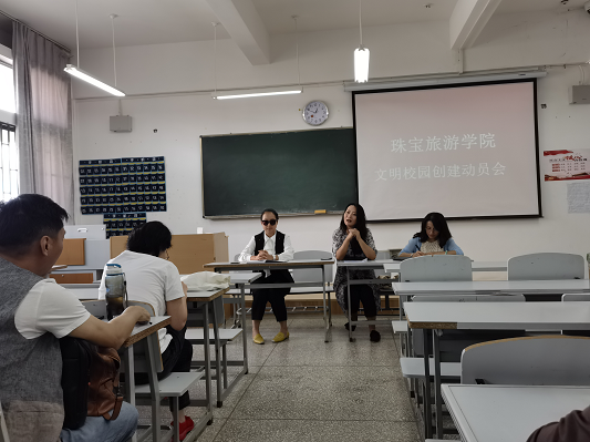 2021年9月26日星期日中午12点40分在线买世界杯平台全体教职工在笃行楼201教室举行文明校园创建动员会。在线买世界杯平台陈畅院长主持此次会议。