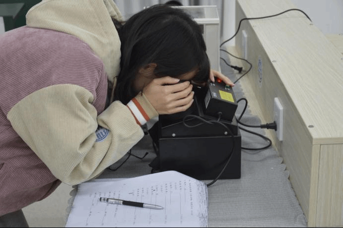 大赛开始之前,监考老师公布大赛流程,即让在座的考生依次去往取样处领取宝玉石标本,领到宝玉石后,需使用精密的仪器认真仔细地鉴别每一颗宝玉石标本,要求考生在两小时内对24颗珠宝玉石标本进行鉴定并予以准确描述。比赛开始后,考生们有条不紊的对24颗珠宝玉石标本的折射率测定、可见光吸收光谱的观察、紫外荧光观察等分项检测并记录。这场大赛既是对考生的珠宝鉴定技术技能水平的考核,也注重同学们意志、心理素质和职业素养的考查,同时也给考生们提供了一个良好的机会和平台展现自我。