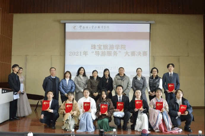 此次导游服务大赛现场精彩不断,展示了导游专业学生良好的职业素养,提高了同学们理论与实践相结合的能力,提高了同学们自身综合素质、巩固了专业知识、强化了专业技能,同时也丰富了同学们的校园文化生活。