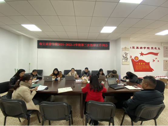 2021年12月15日下午2点在勘物楼A311,在线买世界杯平台召开了本学期第二次教学工作会议。在线买世界杯平台杨家娣副院长,宝石鉴定与加工、旅游管理、休闲服务与管理3个专业群教研室主任、专业带头人以及学院教学秘书出席本次会议。