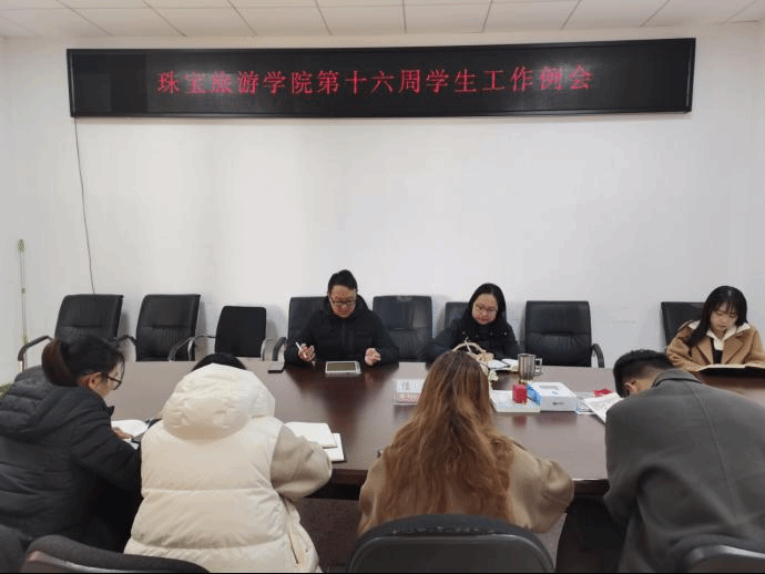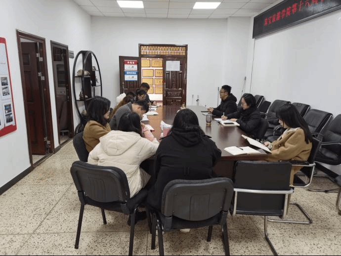 2021年12月14日星期二上午在线买世界杯平台在勘物楼A311会议室召开第十六周学生工作例会。会议由孙杰主持,党总支书记张颖和全体学工办辅导员参加。