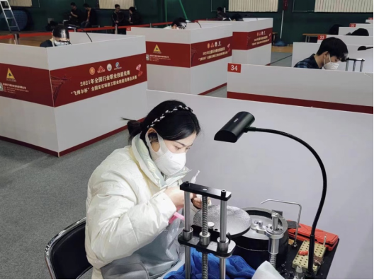 12月21日,2021年全国行业职业技能竞赛“飞博尔杯”宝石琢磨工职业技能竞赛总决赛在北京经济管理职业学院固安校区顺利落下帷幕。比赛由中国轻工业联合会、中国轻工珠宝首饰中心、中国就业培训技术指导中心及中国财贸轻纺烟草工会全国委员会主办,由晋江海峡职业培训中心、北京经济管理职业学院承办,竞赛所用设备由深圳市飞博尔珠宝科技有限公司独家赞助。此次总决赛分为职工组和学生组,分别设有理论测试和实际操作技能两个竞赛环节,要求参赛选手在规定时间内完成两颗宝石的切磨及理论答题。重点考察参赛选手的知识能力和技艺水平。