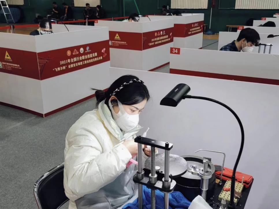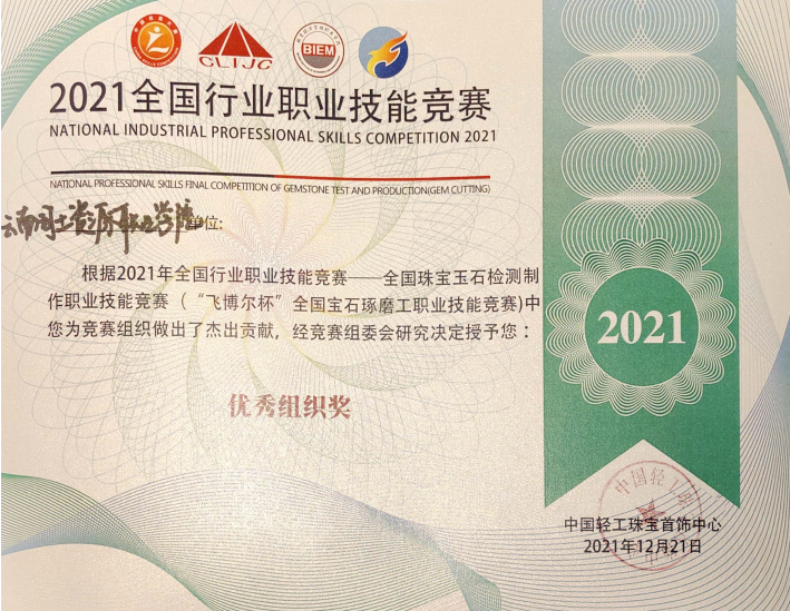 随后纳秀溪老师和罗帮莲代表在线买世界杯平台,参加了2021年12月21日在北京经济管理职业学院举行的“2021年全国行业职业技能竞赛“飞博尔杯”宝石琢磨工职业技能竞赛总决赛。该比赛由中国轻工业联合会、中国轻工珠宝首饰中心、中国就业培训技术指导中心及中国财贸轻纺烟草工会全国委员会主办,由晋江海峡职业培训中心、北京经济管理职业学院承办,此次总决赛分为职工组和学生组,分别设有理论测试和实际操作技能两个竞赛环节,要求参赛选手在规定时间内完成两颗宝石的切磨及理论答题。重点考察参赛选手的知识能力和技艺水平。
