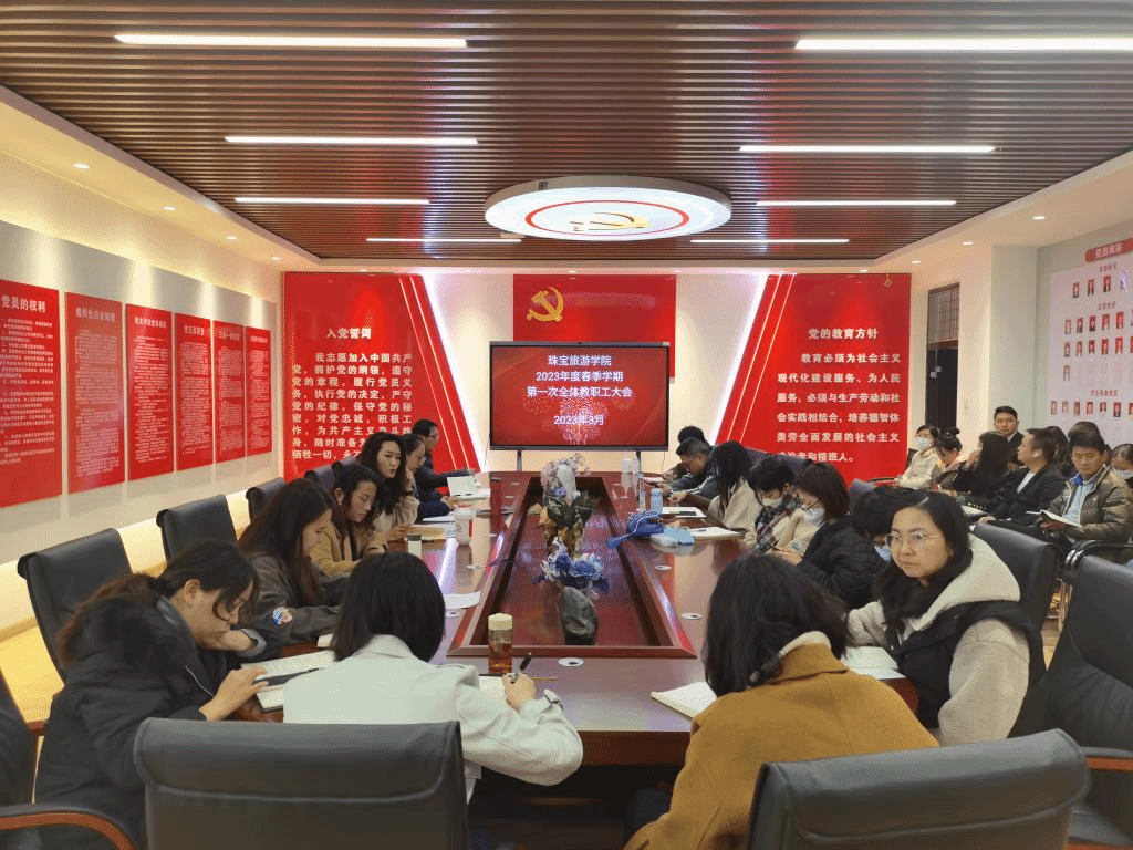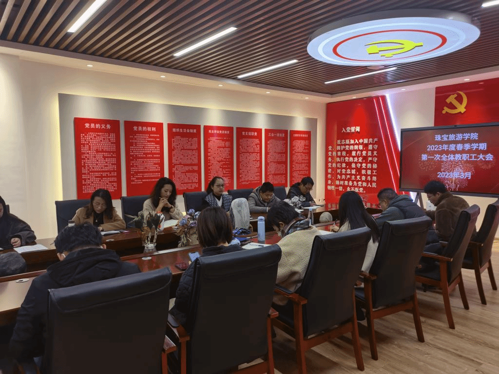 2023年3月2日星期四上午十点在线买世界杯平台在党建活动室召开2023年度春季学期第一次全体教职工大会。