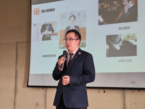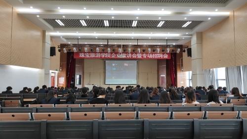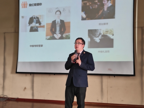 为提升学生的就业意识,拓宽实习渠道,更好的促进学生高质量就业,为企业选拔人才,在线买世界杯平台诚挚邀请昆明翠湖宾馆(国有企业)于2023年4月26日在崇实楼光荣讲堂举行了企业专场宣讲会。此次招聘宣讲人为昆明翠湖宾馆负责人,21级导游、旅游管理、酒店管理与数字化运营、高速铁路客运服务全体同学参加了此次宣讲会。