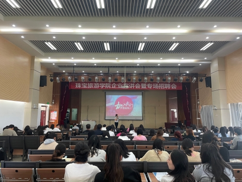 宣讲会伊始,福建德诚、深圳春秋商贸、怡泰祥珠宝、昆明世纪金源大饭店、昆明富力万达文华酒店、云南民族村、上海莫味汇(餐饮)、上海美心集团(餐饮)、王品牛排依次通过播放宣传片和ppt的演示方式,向同学们介绍了企业发展历程、公司实景、企业文化、讲解了企业招聘岗位、薪酬福利及员工发展和应聘流程。