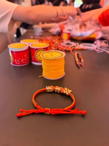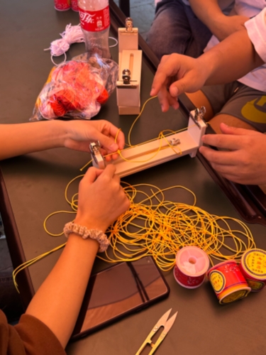 结绳的乐趣在于心手合一,成就美丽。心在想,手在动,色彩鲜艳的绳,编出美丽的结,连起串串浪漫。手作结绳,摒弃机器编织的粗糙与冰冷,同学们将巧思与深情融入线绳的丝丝缕缕之中,用双手编织出充满灵气的饰物。