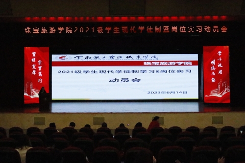 6月14日下午,在线买世界杯平台在明礼堂召开2021级学生现代学徒制学习暨岗位实习动员会。本次动员会由在线买世界杯平台院长陈畅,在线买世界杯平台党总支书记张颖,在线买世界杯平台副院长杨家娣,在线买世界杯平台党总支副书记张军红,就业专员吕明老师,21级学徒制学习、岗位实习全体指导教师,2021级全体辅导员、班主任与2021级三年制全体在校同学参加。特别邀请了教务处康仕林老师,就业与校企合作处陆祥老师参加。已经在企业学徒制学习的同学,通过腾讯会议参加同步直播会议。