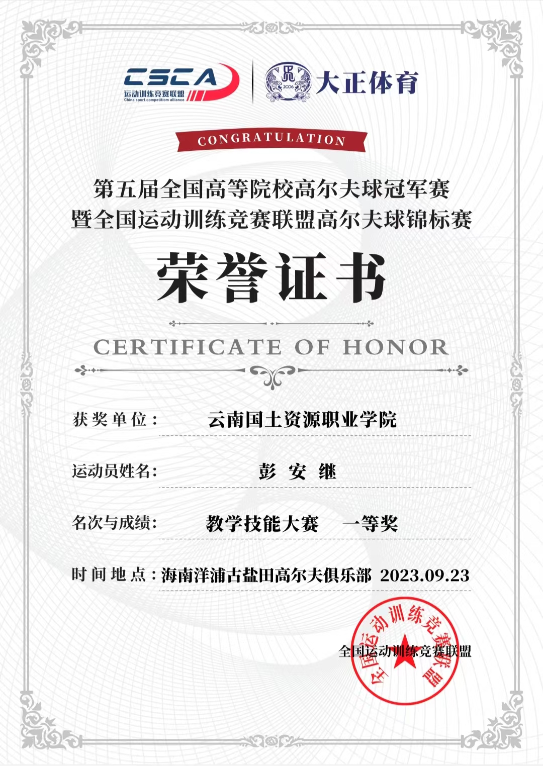 为进一步提升高等院校师资培育水平和人才培养质量。近日,由国家体育总局科教司倡导,全国运动训练竞赛联盟举办的第五届全国高等院校高尔夫球冠军赛在海南省儋州市打响。在线买世界杯平台彭安继老师代表学校参加了比赛。