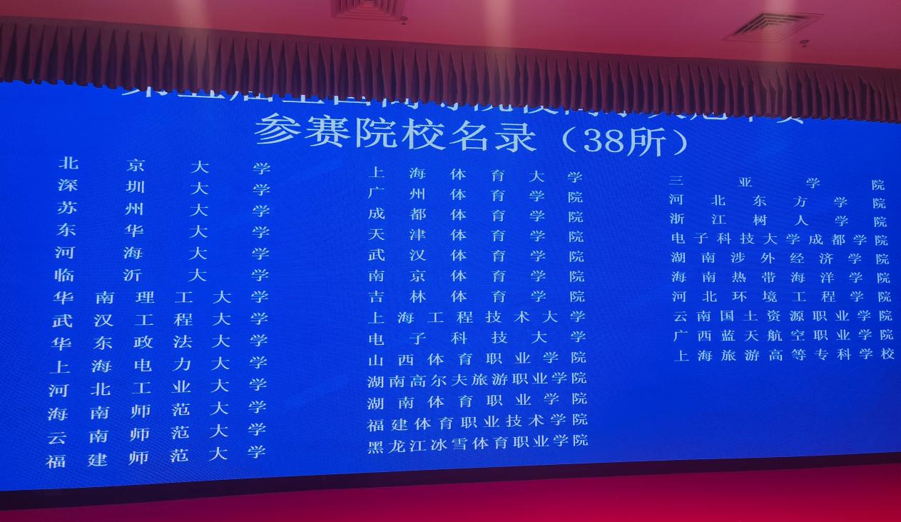 本次比赛共有38所高校报名参加,61名高校专业教师共同参与竞赛。参赛水平高,其中不乏北京大学、上海体育大学、深圳大学等知名院校。