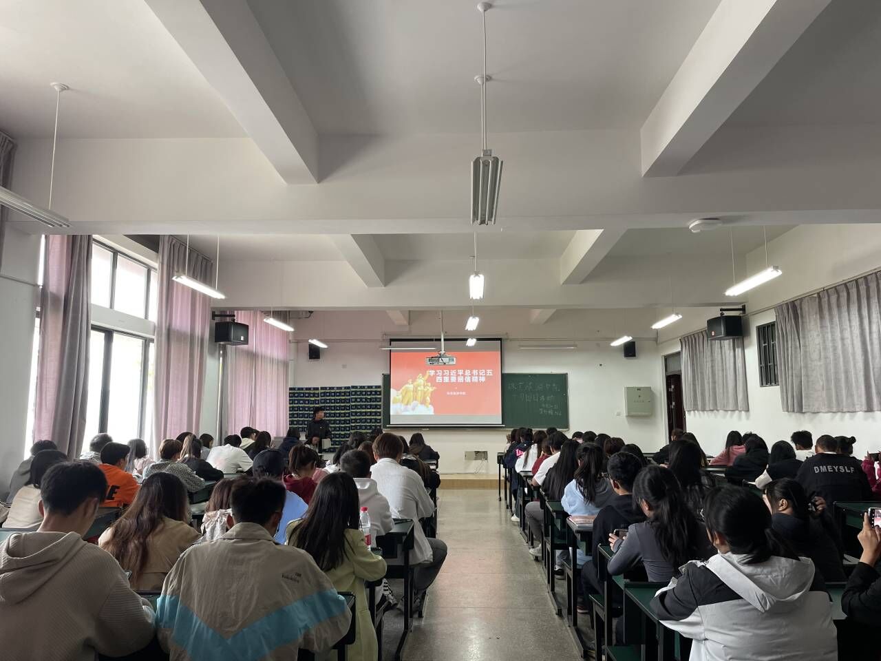 其次,团副孙安琪带领参会人员学习了习近平总书记五四重要回信精神。她详细解读了回信精神的四个方面,包括深刻领会习近平总书记的殷切嘱托,深刻认识主题教育的重大意义,深刻把握教育、科技、人才“三位一体”战略部署,以及坚决夯实为党育人、为国育才的思想根基。期间,团副陈杰还带领大家回顾了从2012年到2023年的中国发展史,让大家深刻认识到要坚持和加强党的全面领导,坚定理想信念。