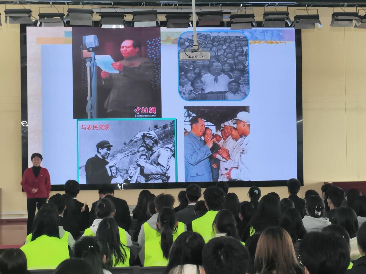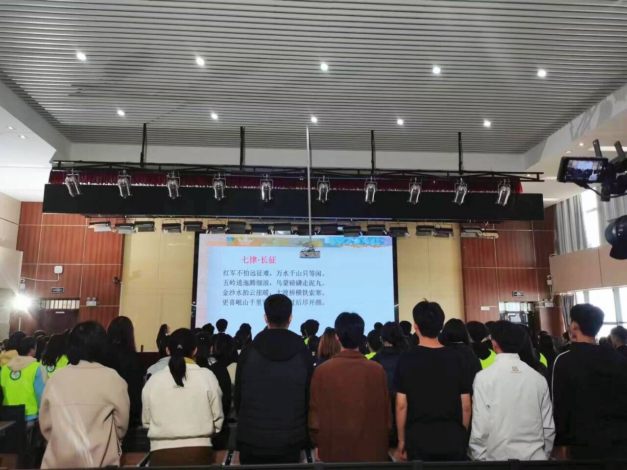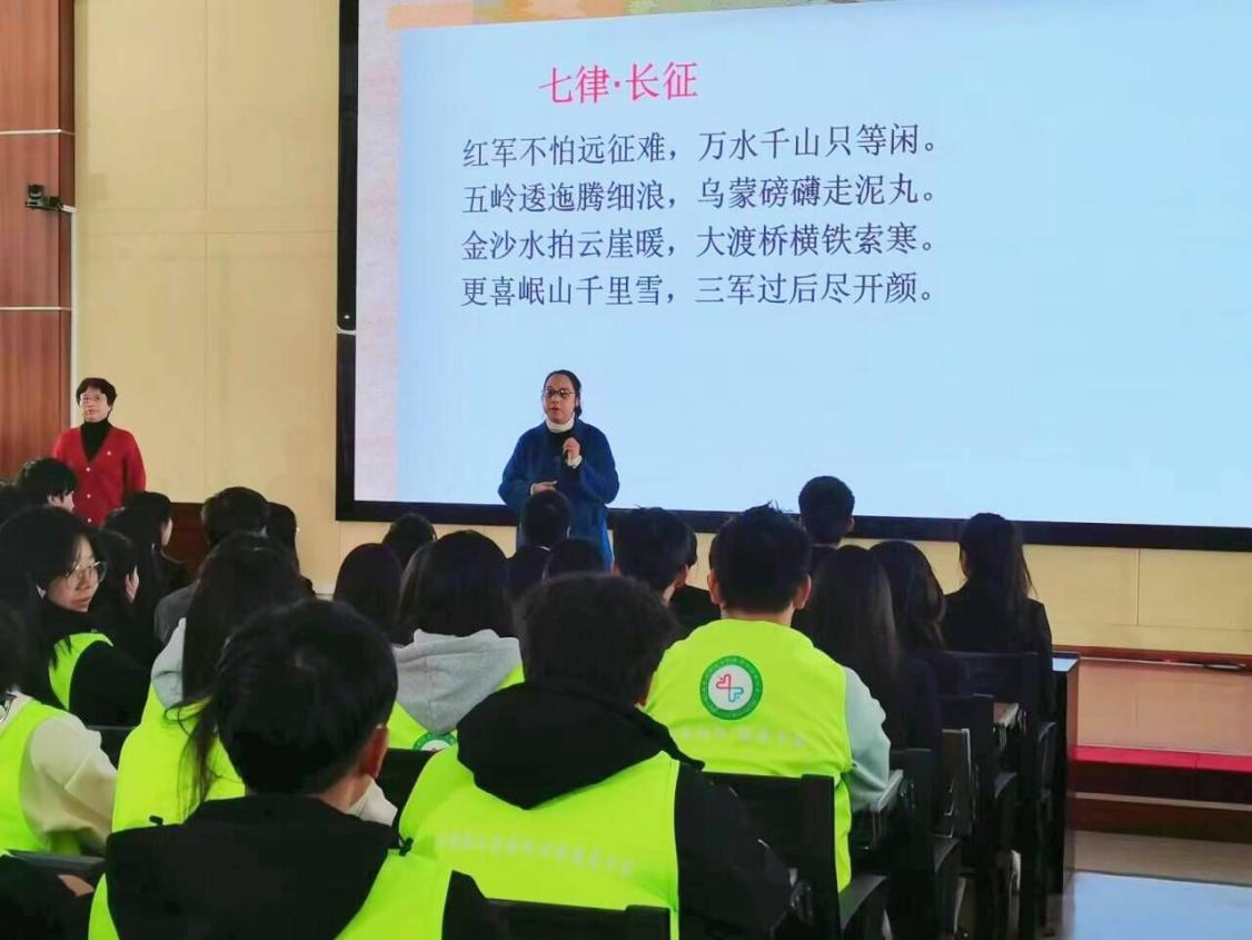 首先,樊玲老师带领同学围绕主题“学习毛泽东伟大思想和伟大品格”展开讲解,深入讲解了伟大精神形成的主客观条件,以及不同时期的主要特点。其中,毛泽东的诗词创作给同学们留下了深刻的印象。十位同学以诗朗诵的形式,为同学们带来一场品味红色精神的鉴赏会,进一步激发了同学们的爱国热情。紧接着,樊老师带领同学们一同齐声朗读《七律·长征》和《沁园春·长沙》,这不仅让同学们更加深入地体会到了伟大精神,也让他们更加坚定了自己的信仰和目标。同学们激昂高亢地诵读声激起了我们心中的千层巨浪,仿佛看到了青年们为了民族复兴而不懈奋斗的身影。随后,樊教授带领同学们热情宣誓:“一代人有一代人的长征,一代人有一代人的梦想,让我们赓续红色文化,传承红色经典!”这不仅是对青年们的激励,也是对青年们的期望。