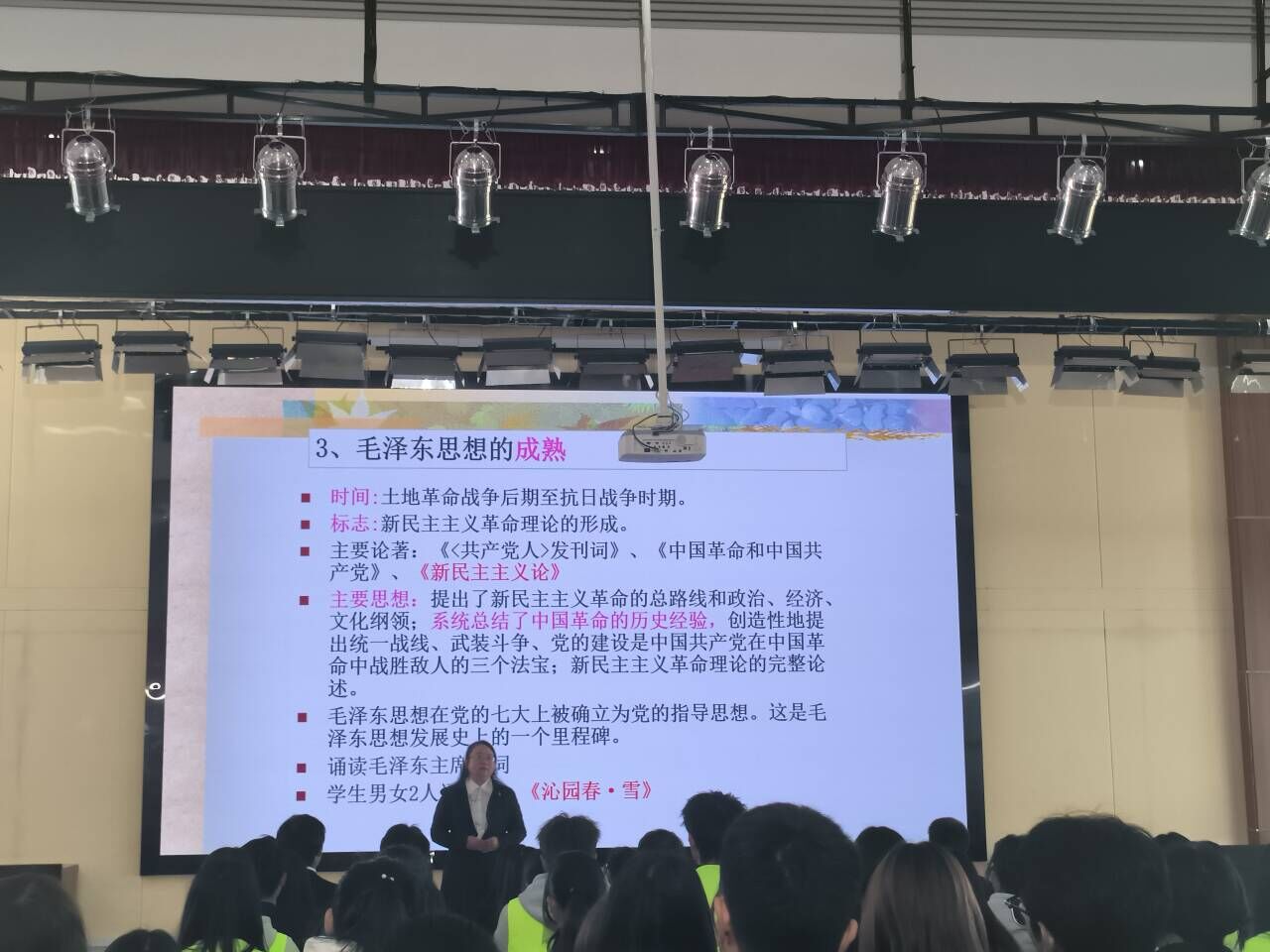 李霞老师对此次主题教育做了总结,她对同学们的表现给予了高度评价,并鼓励同学们继续发扬红色精神,为实现中华民族伟大复兴而团结奋斗。最后,全体同学起立诵读毛泽东诗集《沁园春·长沙》,活动在同学们诵读声中落下帷幕。