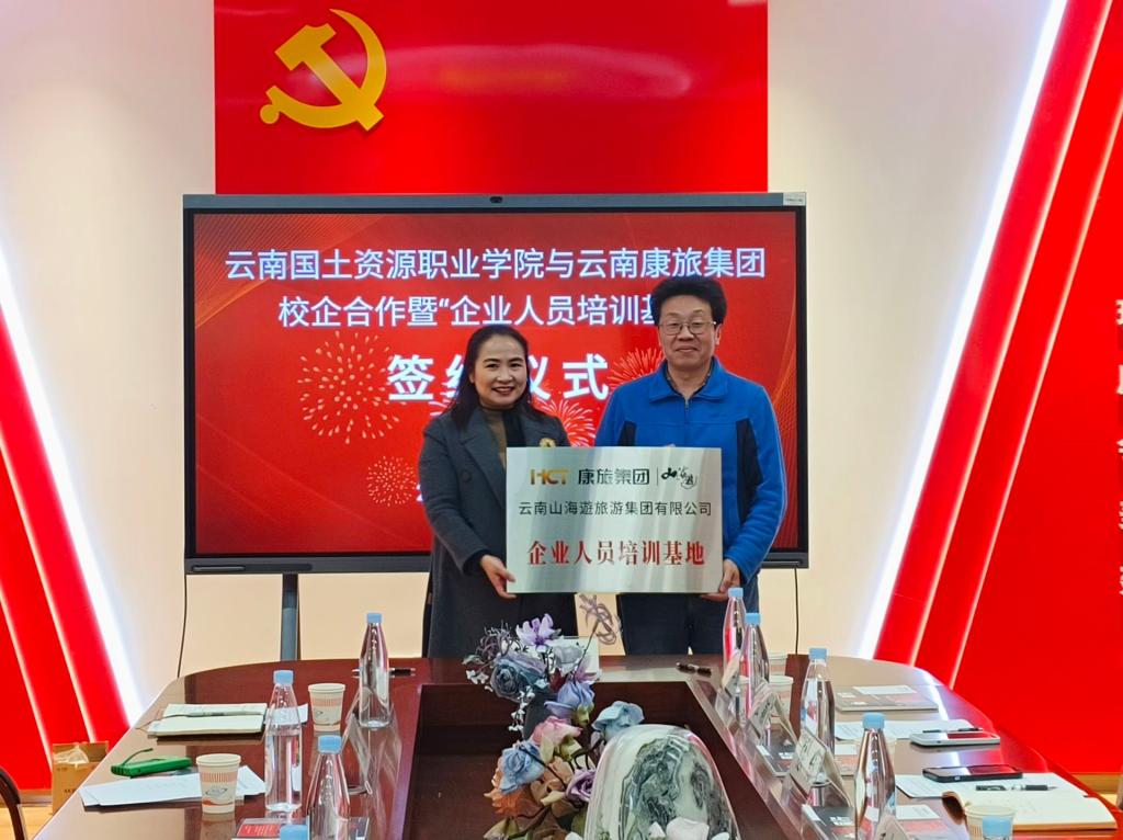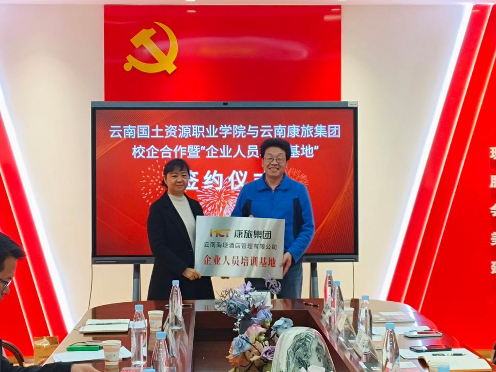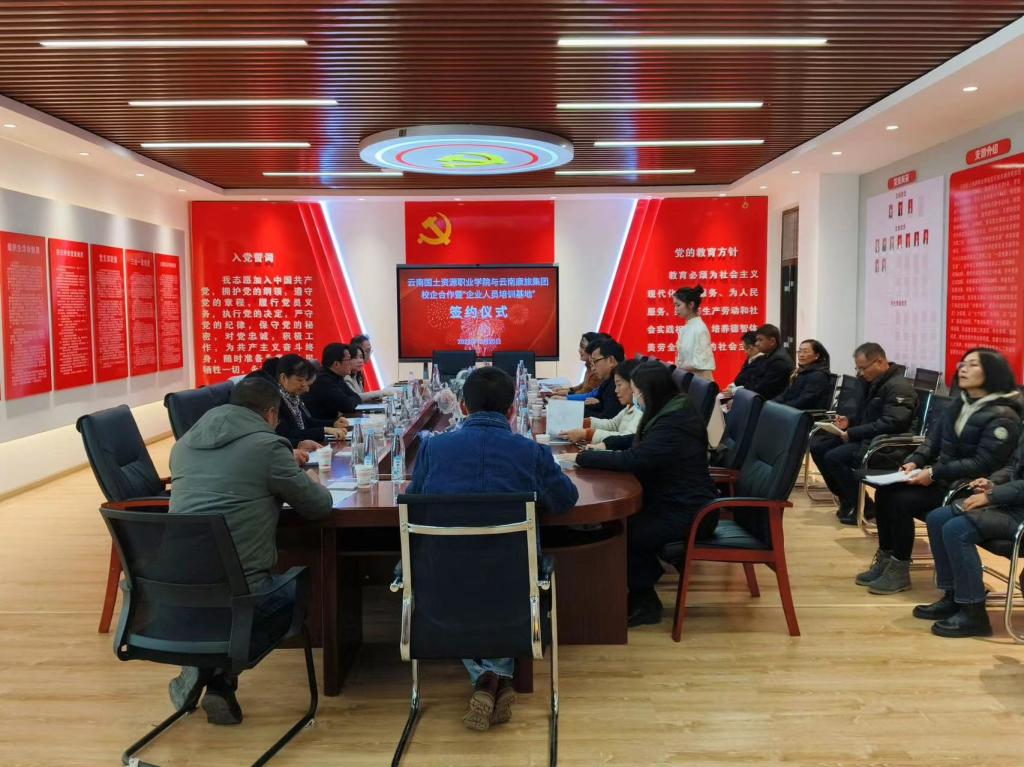2023年12月20日下午3点,在线买世界杯平台与云南康旅集团在勘物楼A303举行了校企合作暨“企业人员培训基地”签约仪式。在线买世界杯平台党委委员、副校长齐武福,继续教育学院院长汪亚男,教务处处长郑毅,在线买世界杯平台院长陈畅,党总支书记张颖,党总支副书记张军红,综合办主任王娅力。云南康旅教育投资管理有限公司党委书记、董事长、总经理梅立韬,党委委员、副总经理赵博,行政办公室主任孙同宝,培训事业部员工戴宇。云南山海遊旅游集团有限公司党委委员、总经理、民族文化公司总经理张怡,战略投资主管王黎。云南海埂酒店管理有限公司党委委员、副总经理皮红霞参加了此次活动。