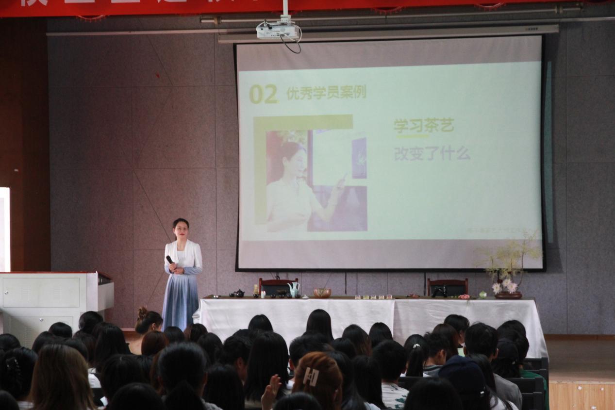 活动邀请到了春城计划首席技师李冬惠老师及其两位高徒安武老师和李旭老师,他们为同学们带来了一场精彩的茶艺表演和茶文化宣讲。四百多名学生参加了此次活动。李冬惠老师首先向同学们介绍了自己从事茶培训行业22年的经历,以及自己通过茶艺培训帮助众多学员提升技能并实现人生价值的故事。她鼓励同学们珍惜当下,努力学习,不断提升自己的能力。随后,安武老师和李旭老师为大家带来了仿宋代点茶以及插花的美学艺术表演,他们的精湛技艺和独特审美赢得了同学们的热烈掌声,同时也让同学们感受到了茶文化的独特魅力。活动中,李冬惠老师还为大家讲解了中国六大茶类的知识,并与同学们互动交流,解答他们的疑惑。同学们纷纷表示,这次活动让他们更加深入地了解了茶文化的内涵,也让他们对中国传统文化产生了更浓厚的兴趣。