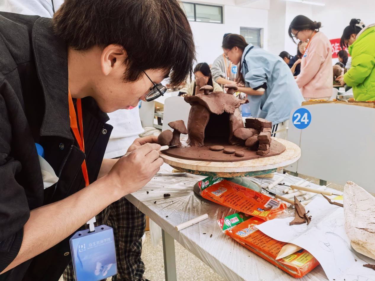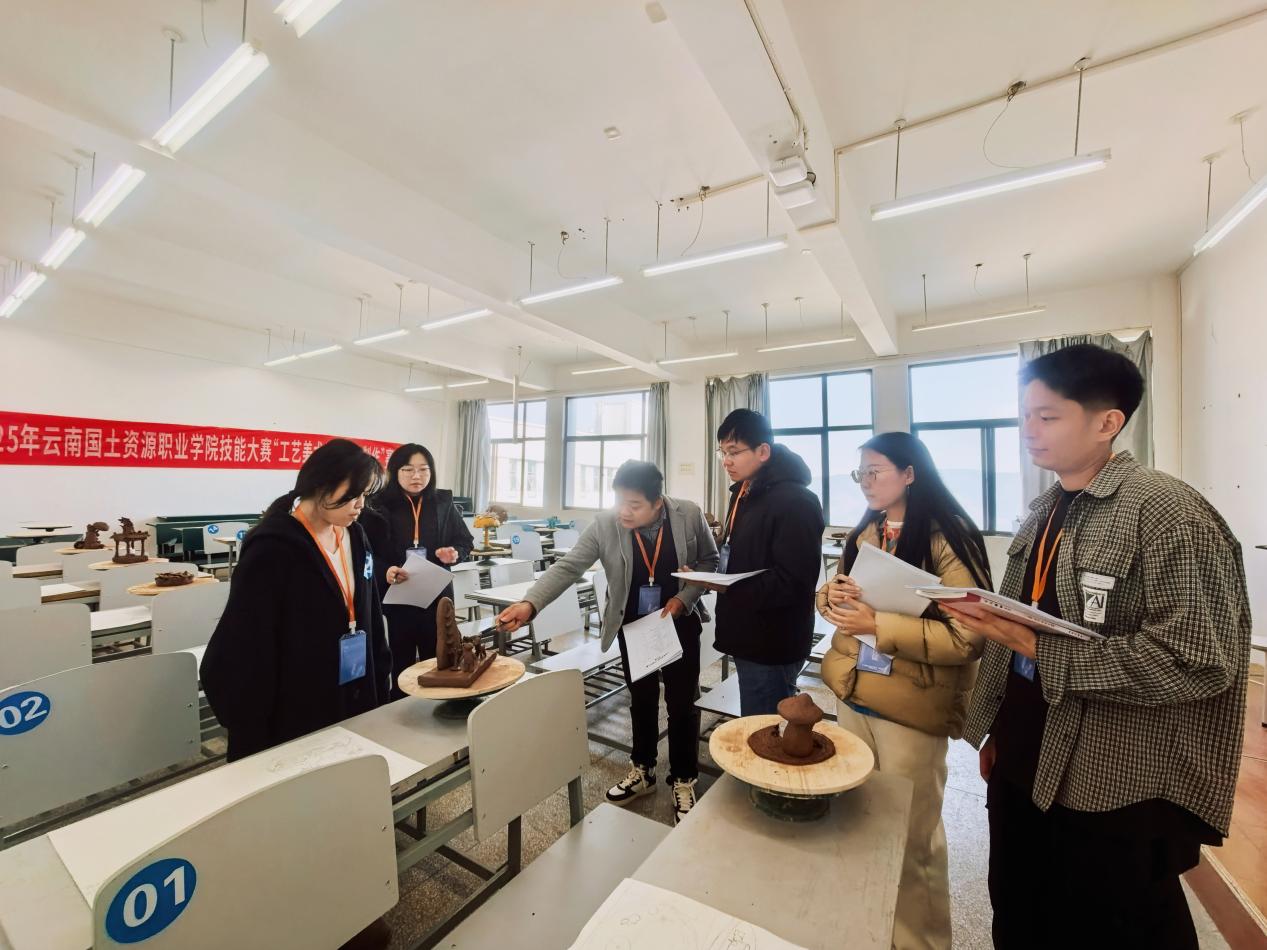 大赛分两个阶段进行:11月25日开展工艺美术品理论考试,11月26日进行设计与制作实操比拼。实操环节包含设计图绘制、泥塑作品现场制作及设计讲解三个部分,重点考察学生理论应用、实操技能及表达能力。学院雕刻艺术设计、首饰设计与工艺专业学生积极参赛,严格遵循竞赛规则,围绕指定主题完成设计创作,提交了一批兼具创意与特色的作品。竞赛评审由学院教师组成评审团,从创意性、技术性、实用性及美观度四个维度进行综合评定。