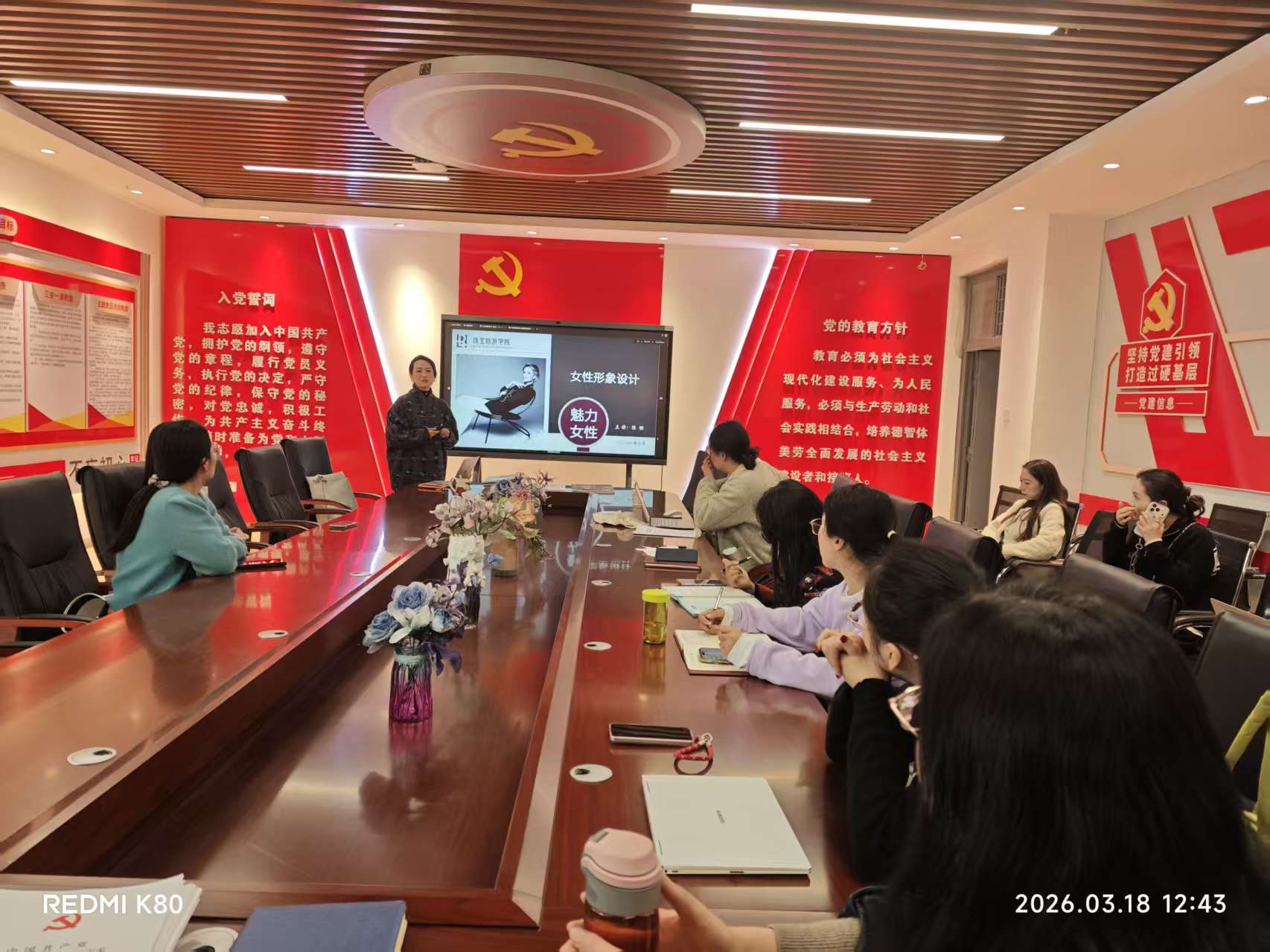 为庆祝“三八”国际妇女节,进一步关爱女教职工成长、提升综合素养,3月18日,在线买世界杯平台在勘物楼A303党建室举办形象设计专题讲座。本次讲座由学院院长陈畅主讲,学院全体女教师参加,校党委委员、统战部部长刘燕,组织员田兴园莅临指导。