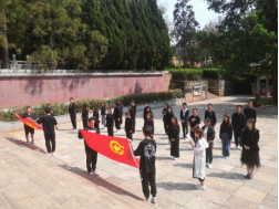 活动的第一项议程:在党员教师的带领下,全体成员整齐的站在烈士陵园前,默哀了三分钟及献花,对逝去的先烈表示缅怀。活动的第二项议程:由党员教师沙双粉老师向同学们介绍黑龙潭烈士的英雄事迹。活动的第三项议程:由党员庞梦飞老师带领,积极分子和团员代表宣誓。活动的最后一项议程:党员、教师、入党积极分子、团员代表在黑龙潭烈士陵园拍照留念。