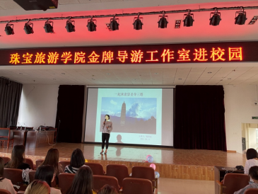 第二位是高级导游、国家旅游局“名导进课堂”师资库成员、文旅部“金牌导游”、茶文化传播者郑耕耘老师,她讲座的主题是《诗文地理------解锁古诗文中的旅游密码》,郑老师从数字切入正题,从诗文中的山水、城市和风光,引出了旅游中的家国情怀,诗+人=故事=旅游讲解,鼓励同学们多看书多学习,知其然更要知其所以然,要爱我中华,爱我家园。