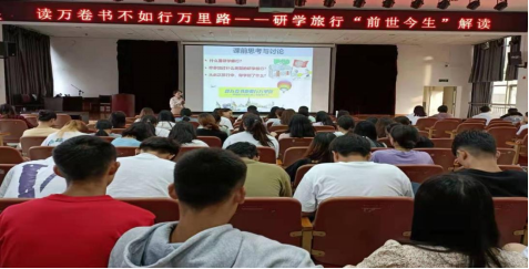 为使同学更好地领悟和体验研学旅行的快乐,在线买世界杯平台副院长杨家娣老师在2021年6月23日晚上于经开校区图科楼三楼报告厅举行“读万卷书不如行万里路——研学旅行‘前世今生’解读”专题讲座。旅游管理、导游、酒店管理、休闲服务与管理、高铁客运乘务等专业300余名学生前来聆听。
