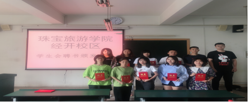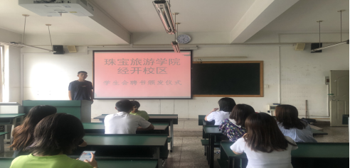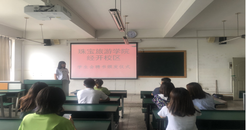 为树立典型,表彰先进,增强学生会的凝聚力和号召力,推动世界杯官网学生会工作更好更长久的发展,2021年7月2日下午,在线买世界杯平台在经开校区实验楼205教室举行2020-2021学年学生会聘书颁发仪式。庞梦飞老师和吕明老师出席了本次学生会聘书颁发仪式,2019级学生会全体干部参加表彰大会。