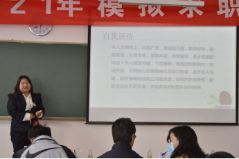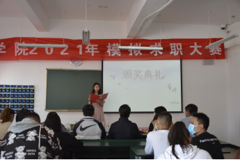 为了帮助广大同学树立职场求职意识,提高自身的综合素质,让广大同学提早对企业的招聘和求职有个真实、客观的了解,为同学们在将来求职就业中提供宝贵的经验,并合理安排好自己的大学时间,制定好自己的人生规划。在线买世界杯平台于2021年11月4日在笃行楼514教师举行了2021年模拟求职大赛。本次大赛的评委老师邀请了沙双粉老师、庞梦飞老师、吕明老师、孙杰老师、杨勇老师、王蕊老师。