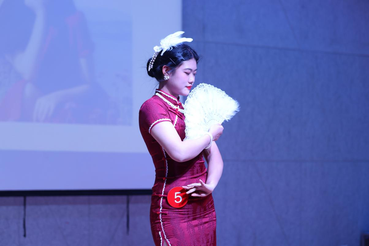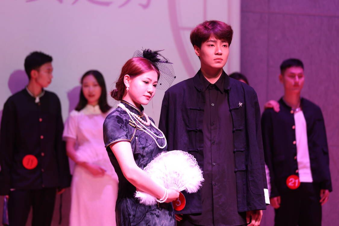比赛开始前,一首古风歌曲《溯》拉开大赛帷幕,舒缓的音乐瞬间平缓了现场紧张的氛围。T台上模特的走秀与音乐的完美结合,给台下观众带来一场华丽的视听盛宴。第一轮比赛以雅韵旗袍为主题,窈窕淑女与谦谦君子,轻柔的身姿与优雅的绅士相得益彰,充分彰显着中国古典的优雅气质与风范。