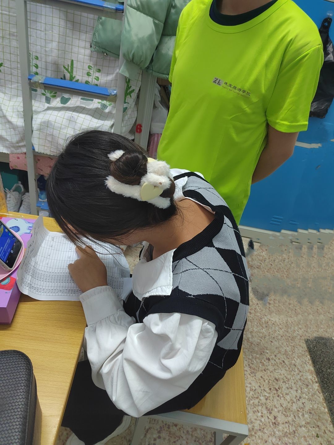 激烈的追逐中,突然我们女足选手摔倒在赛场上,我们的志愿者同学立即上前查看伤势并把受伤的同学送往校医务室进行一系列的检查,并留在医务室细心照料。