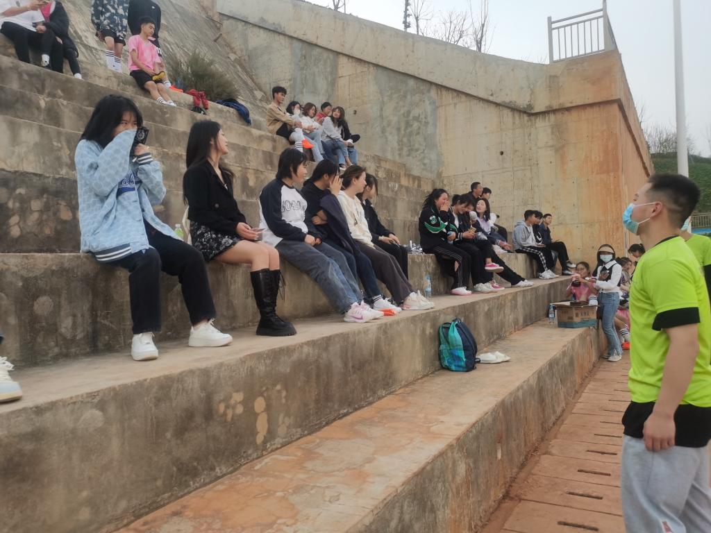 以实际行动践行初心使命,为自己的学院做贡献。志愿者们不畏艰辛,到观众台上指导同学们保持安全距离,提醒到场加油的同学佩戴好口罩并在出入口测量同学体温是否正常。同时当学院同学比完赛,志愿者们积极主动去搀扶比赛完的同学,给她们递水,送食物,询问身体是否受伤等。