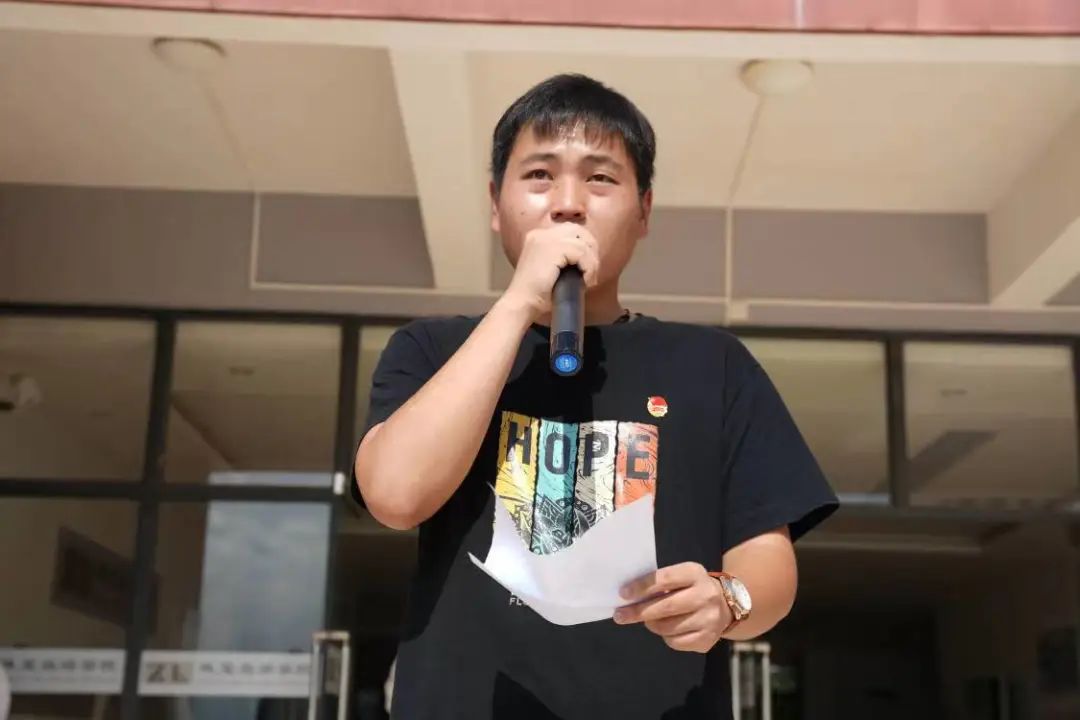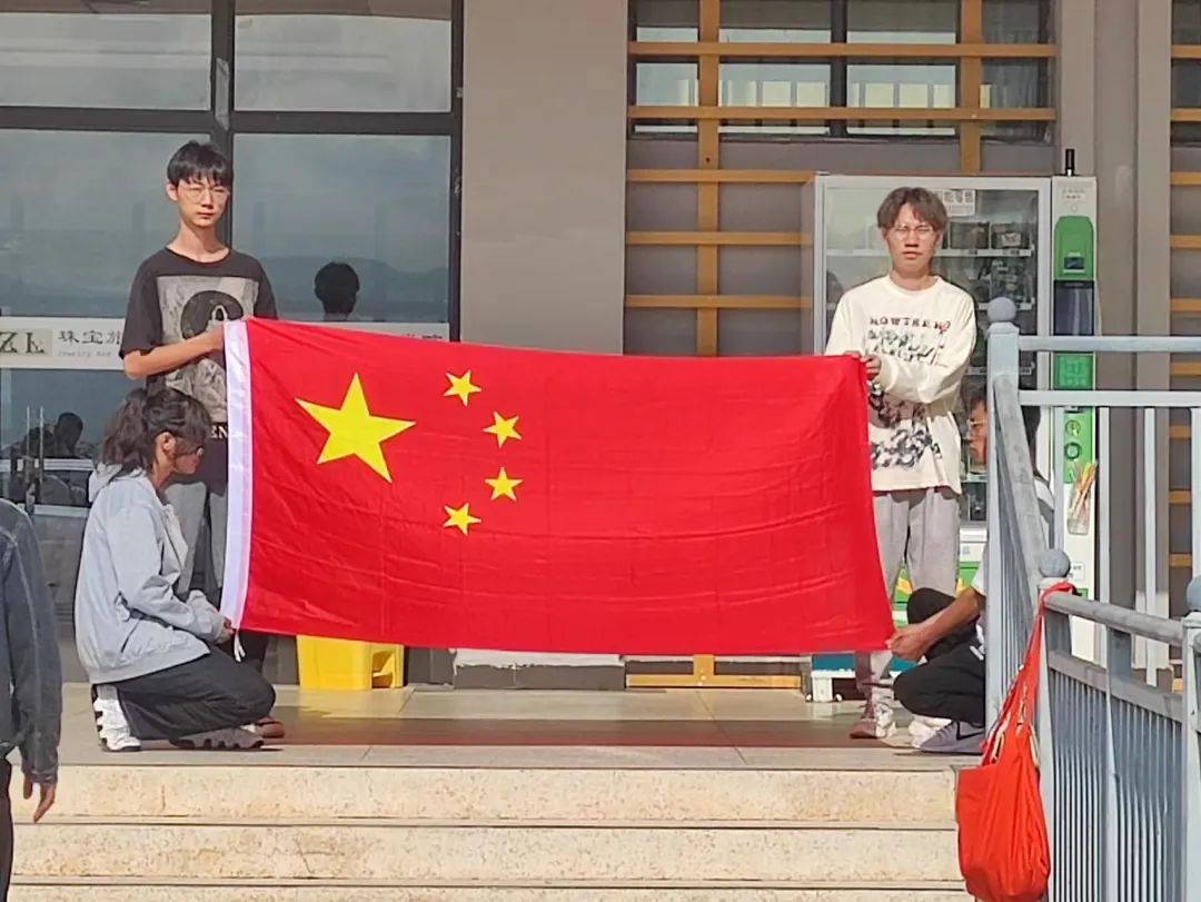 活动开始,全体人员站在洒满晨辉的国旗下,共唱中华人民共和国国歌——《义勇军进行曲》。